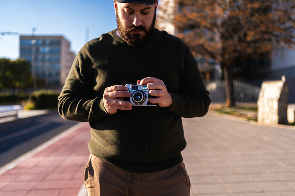 Male Photographer Taking Picture Of Los Angeles Skyline At Sunset